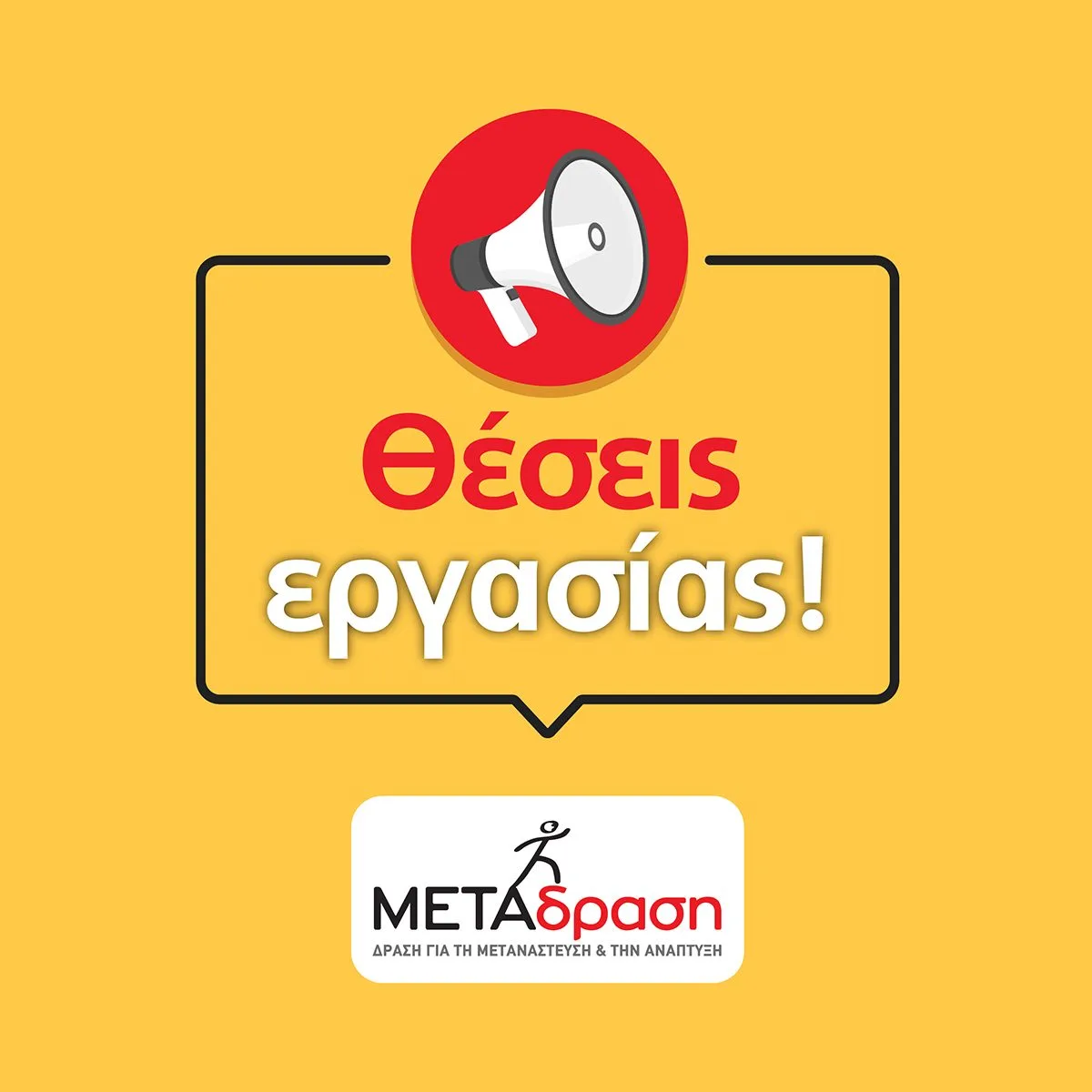 Η ΜΕΤΑδραση παρέχει ίσες ευκαιρίες απασχόλησης και απαγορεύει τις διακρίσεις στην απασχόληση λόγω φυλής, φύλου, χρώματος, θρησκείας, σεξουαλικού προσανατολισμού, ηλικίας, οικογενειακής κατάστασης ή αναπηρίας.